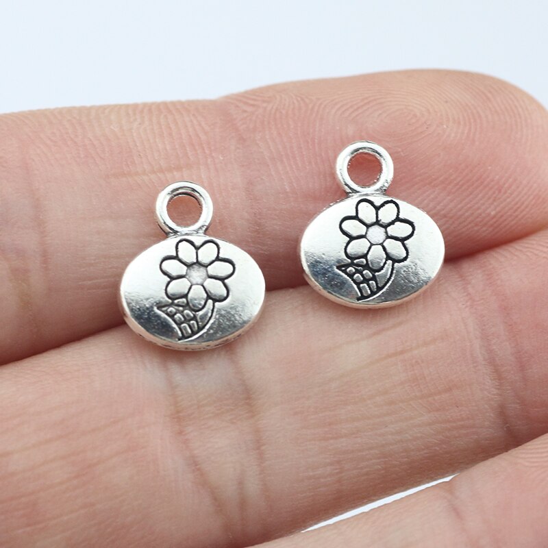 20 Pieces 24*22mm Mixed Alloy Antique Silver Color Flower Round Charms Bracelet Pendant Accessory For DIY Jewelry Making