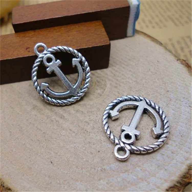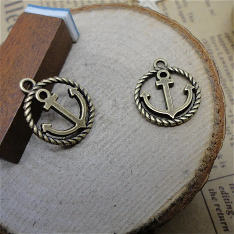 20 Pieces/Lot 15mm*18mm Antique Silver plated Or Antique Bronze Round Rope Anchor Charms Fit For Jewelry Making