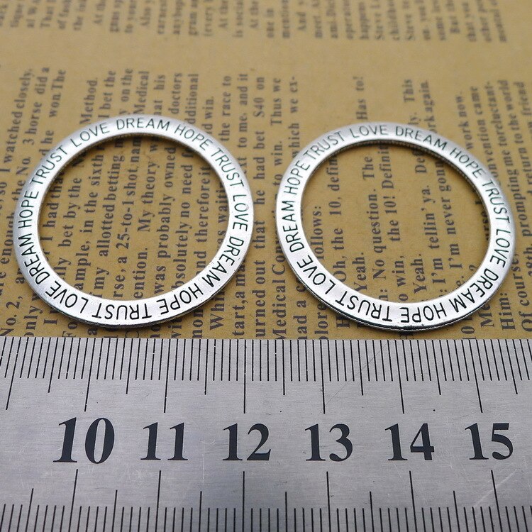20 Pieces/Lot 36*36mm Antique Silver Plated Alloy Letter circular ring Charms Pendant For Diy Jewelry Making