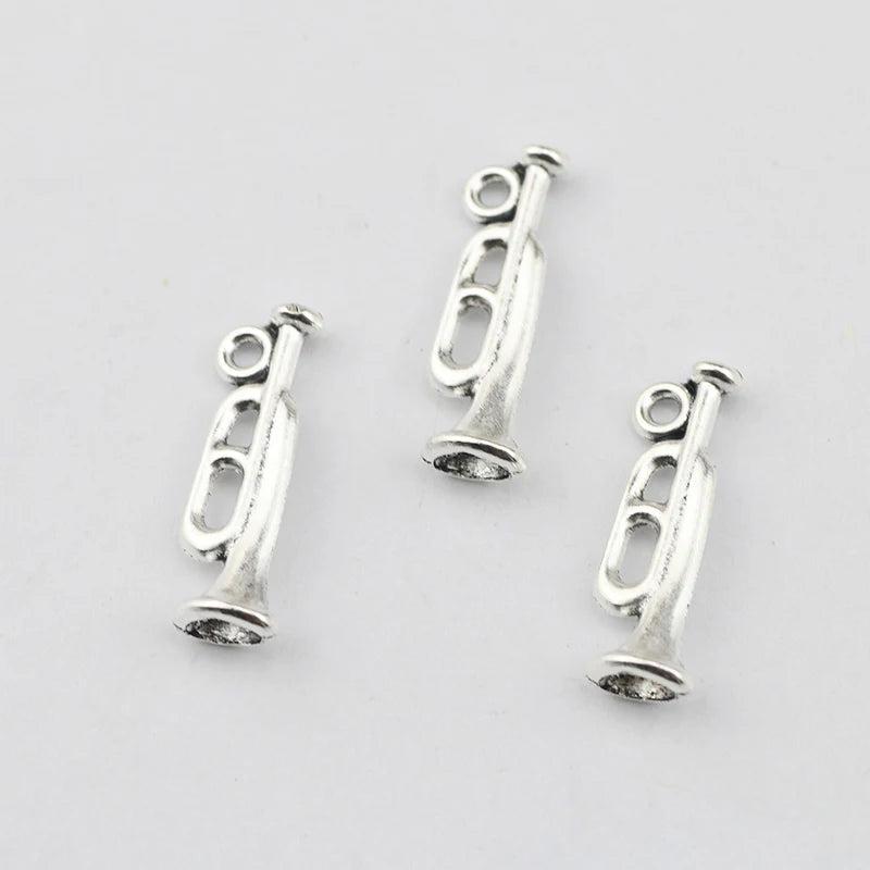 20 Pieces/Lot 8mm*22mm Antique Silver Plated Diy Jewelry Making Musical Horn Trumpet Charms For Jewelry Making
