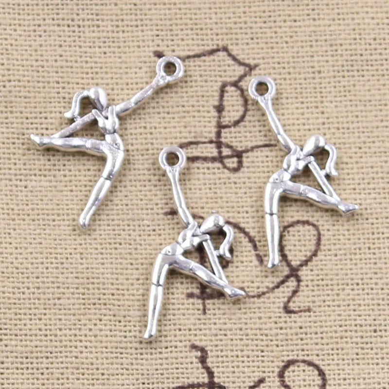 20pcs Charms gymnastics gymnast sporter 26x13mm Antique Silver Color Pendants Making DIY Handmade Tibetan Finding Jewelry