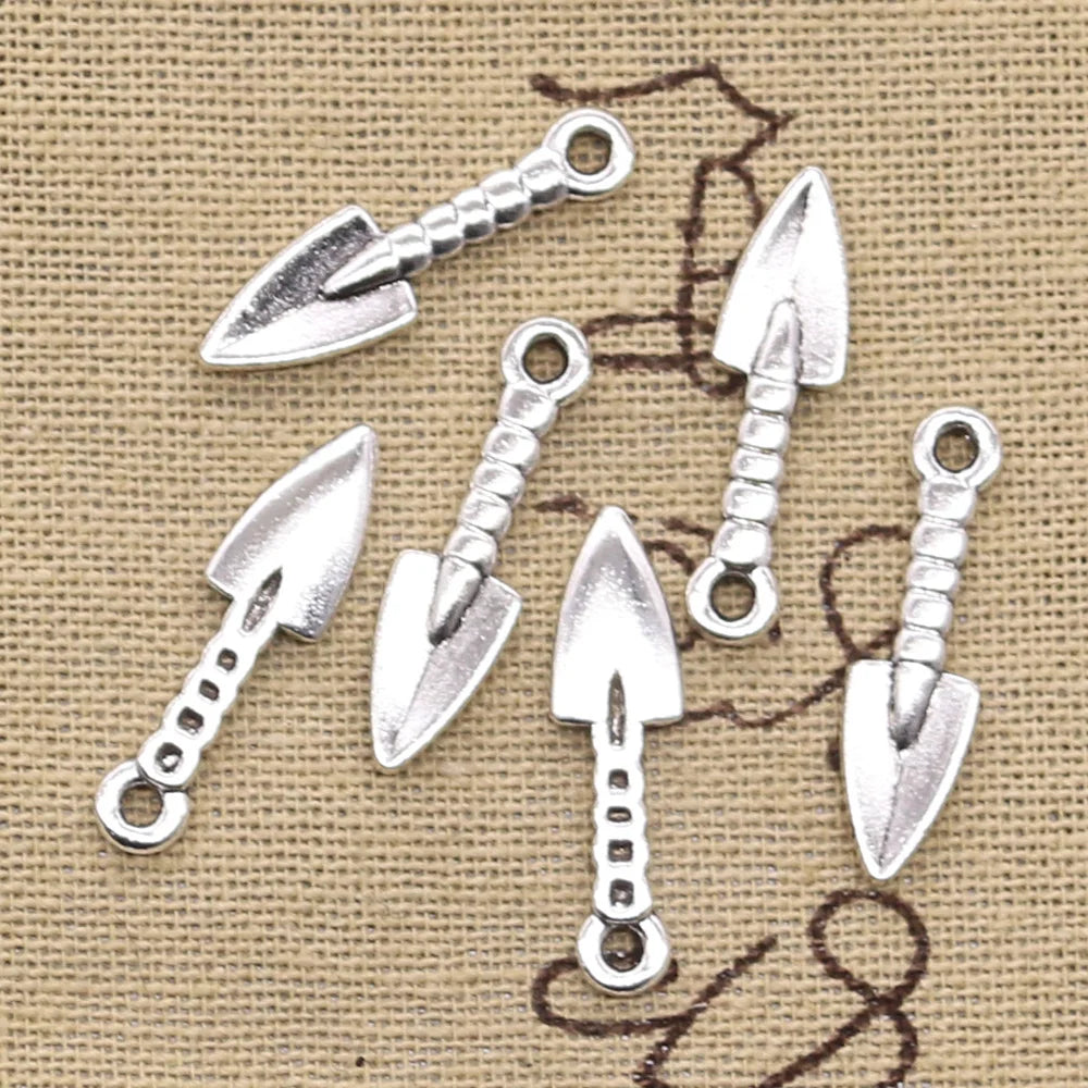 20pcs Charms Military Shovel Spade 25x7mm Antique Silver Color Pendants Making DIY Handmade Tibetan Finding Jewelry