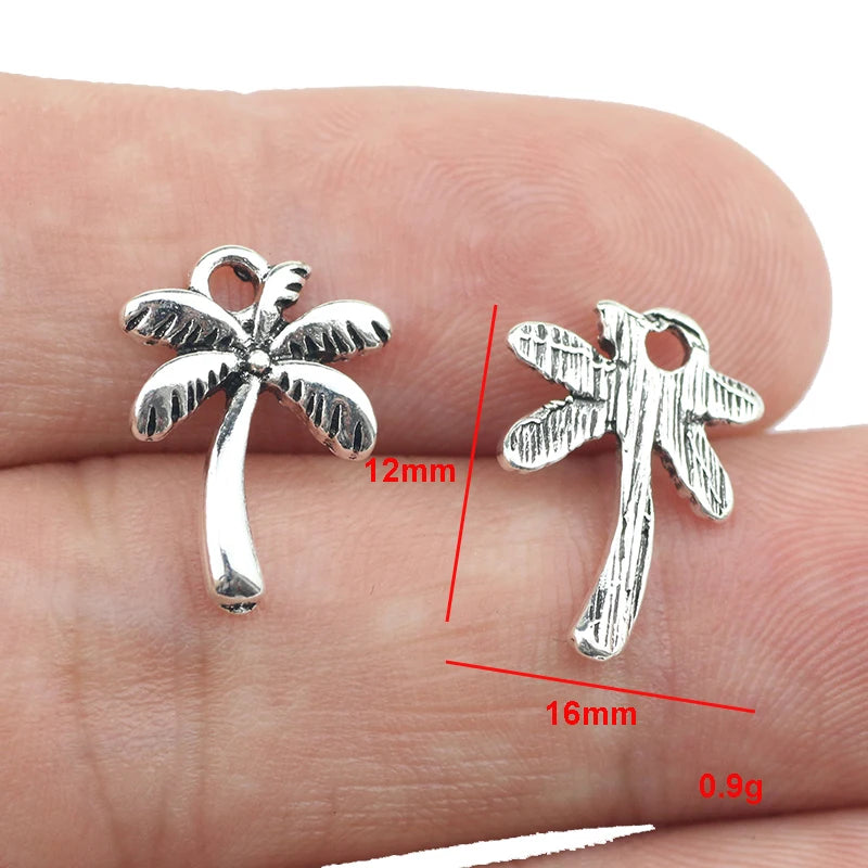 20piece/lot 12*16mm Antique Silver Plated Coconut Tree Pendant Charm Plant Palm Tree Charms For Jewelry Making