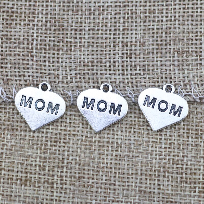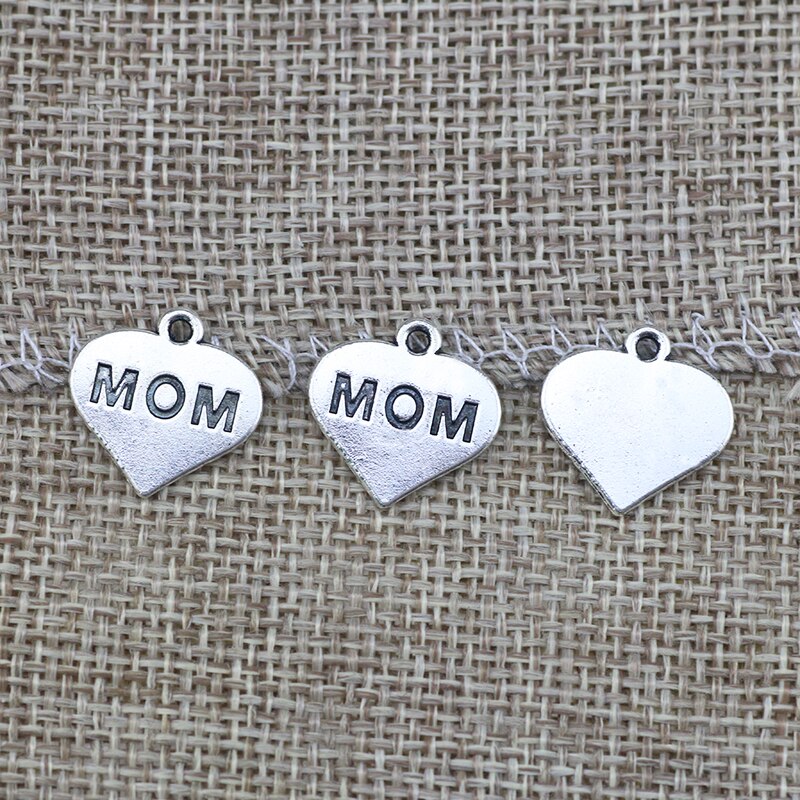 20Piece /lot 16*16mm Mixed Alloy Antique Silver Color Heart Love Mom Charms Keychain Pendant Accessory For DIY Jewelry Making