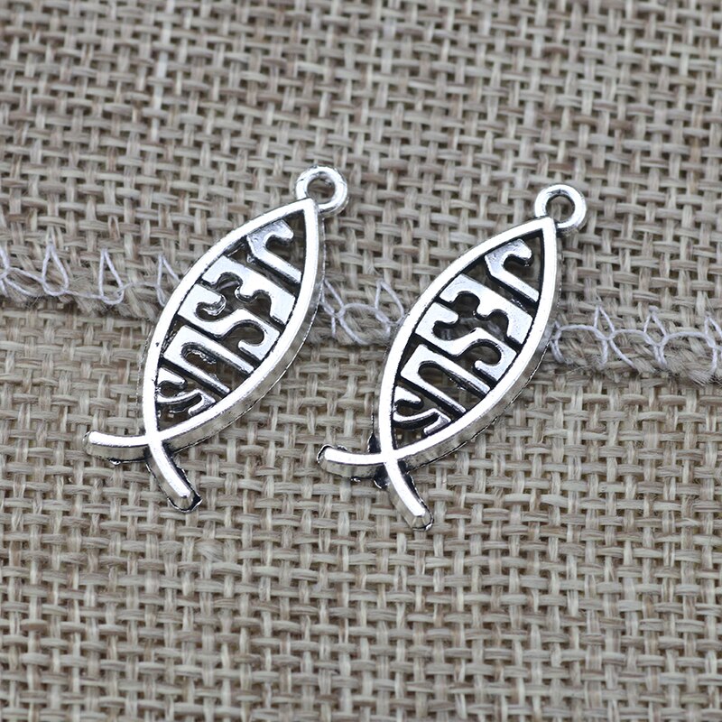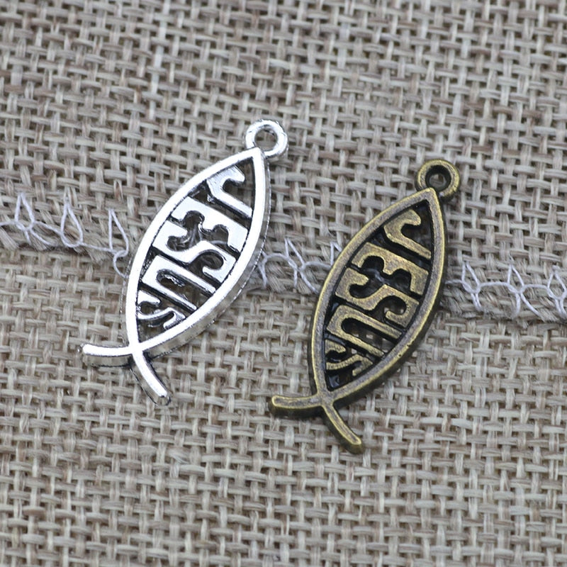 20Pieces/lot 13x23mm Antique Silver /Bronze Color Fish Charms Lettering Jesus DIY Handmade Jewelry