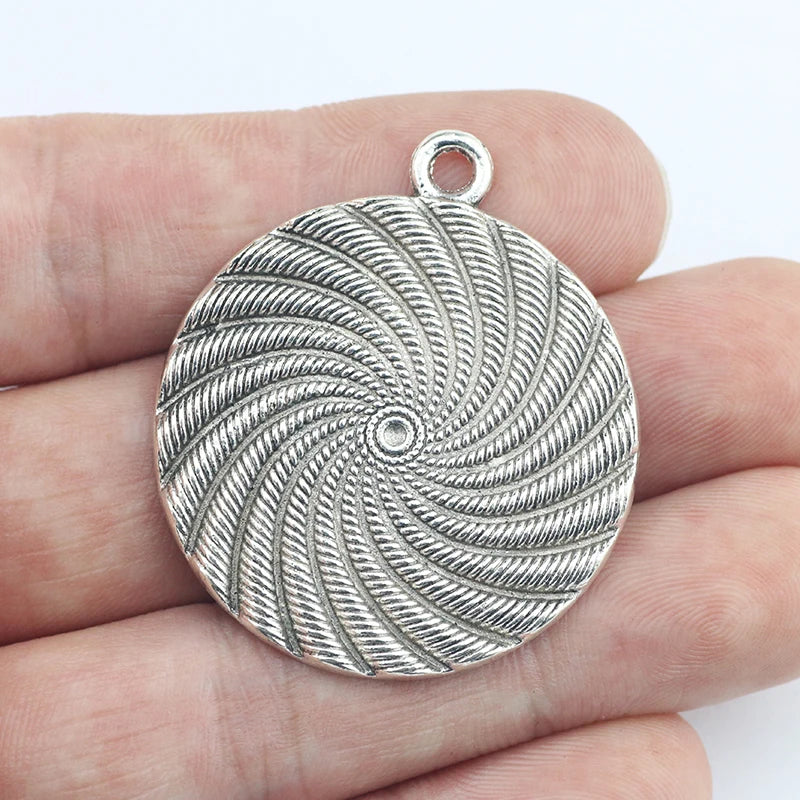3 Pieces 35*40mm Antique Silver Color Alloy Circle Thread Charms Necklace Earrings Pendant Charms For Jewelry Making Findings