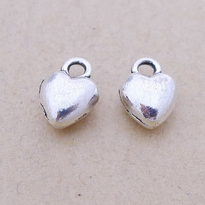 30 Pieces 10*7mm Mixed Alloy Antique Silver Color Little Heart Charms Bracelet Keychain Pendant Accessory For DIY Jewelry Making