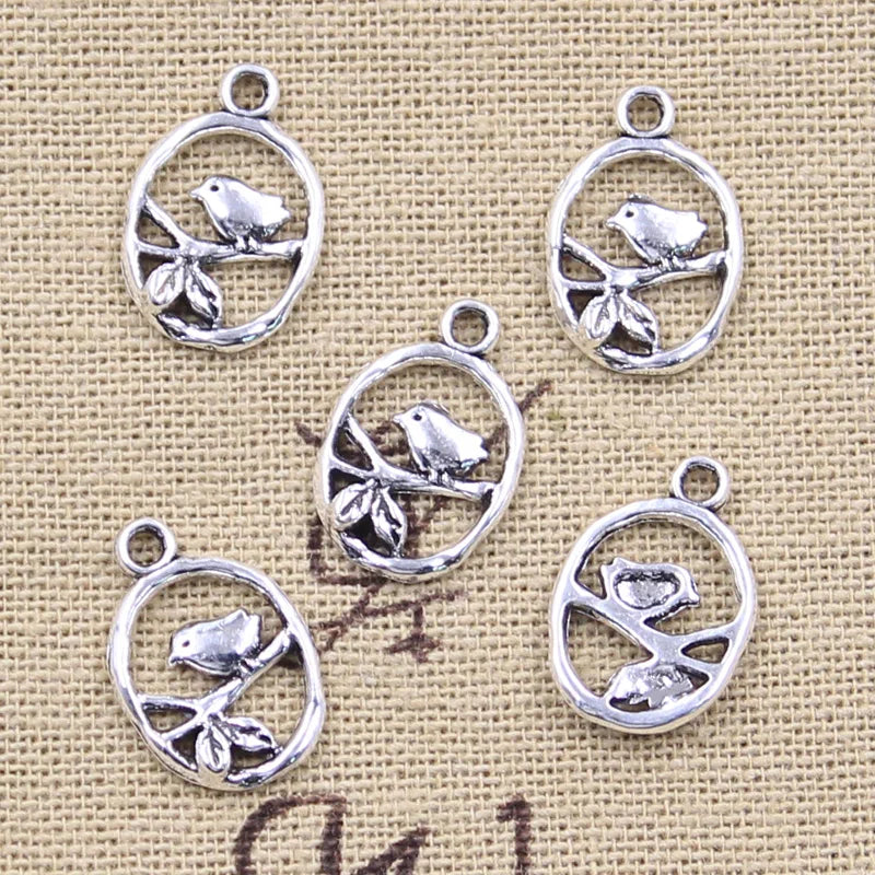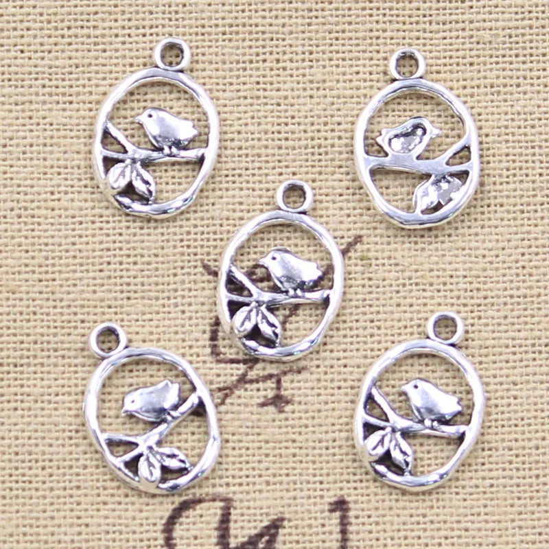 30pcs Charms Bird Standing On Branches 18x12mm Antique Silver Color Pendants Making DIY Handmade Tibetan Finding Jewelry