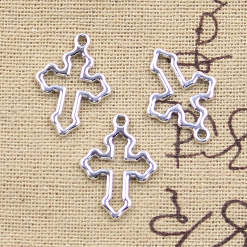 30pcs Charms Hollow Cross 21x15mm Antique Silver Color Pendants Making DIY Handmade Tibetan Finding Jewelry H1297