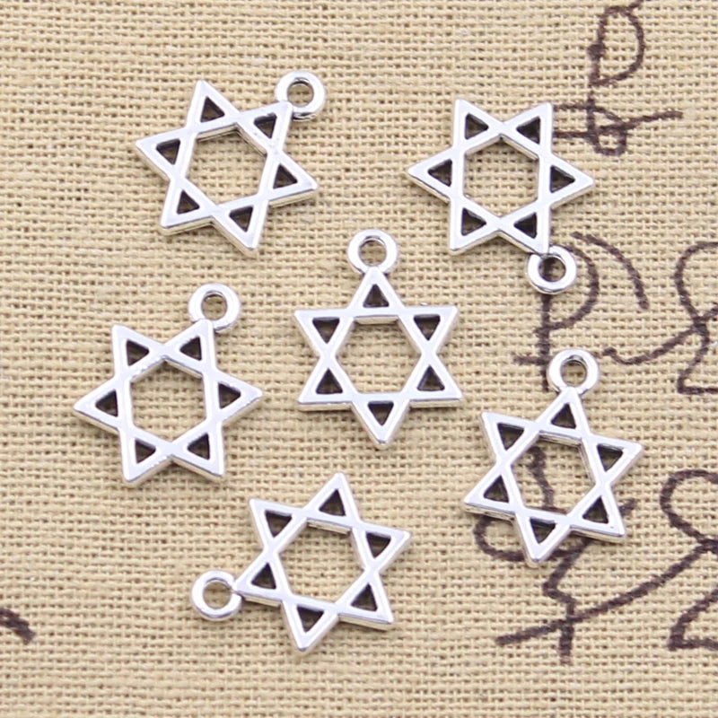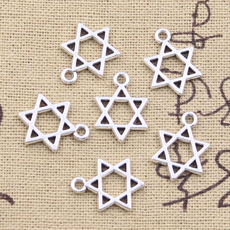 30pcs Charms Star Of David Shield Hexagram 17x13mm Antique Silver Color Pendants Making DIY Handmade Tibetan Finding Jewelry