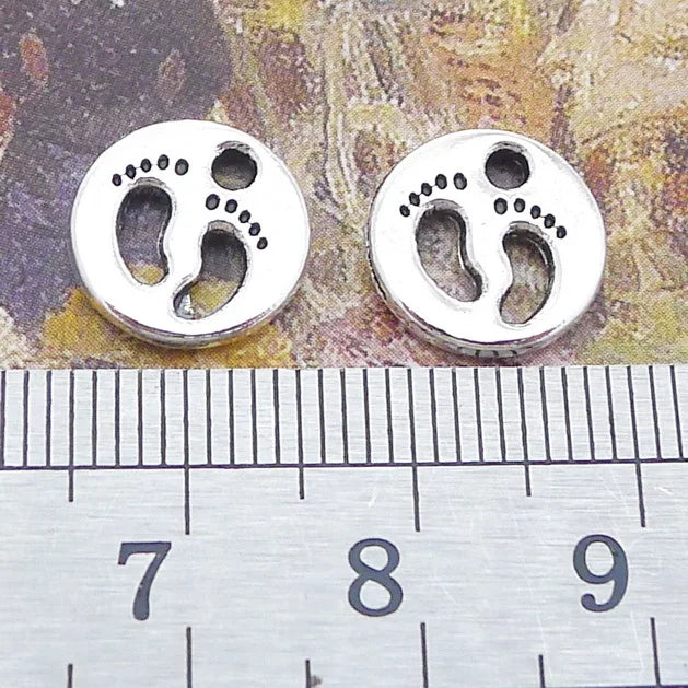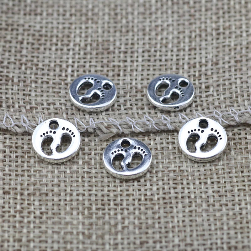 30Pieces/lot 11x11mm Antique Silver Color Baby Feet Round Charms Cute Pendant DIY Handcraft Jewelry