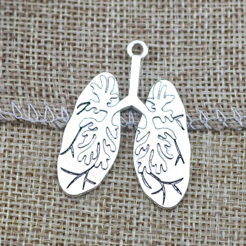 4 Pieces 30x40mm Antique Silver Color Lung Medical Charms Keychains Bracelet For DIY Jewelry Making