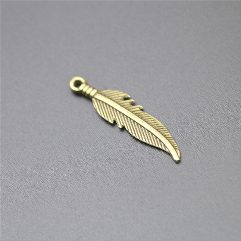 50 Pieces/Lot 7mm*27mm Antique Silver plated Or Antique Bronze Small Feather Charms Fit For Diy Jewelry Making