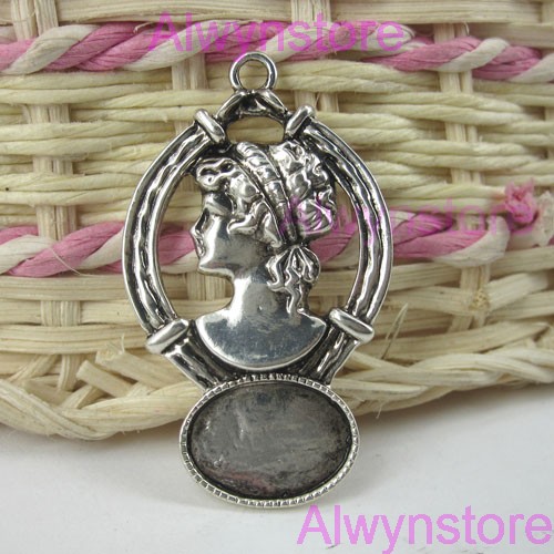 description: 5pcs40x24mm antiqued Silver Embossed Victorian Cameo Pendant (cabochon size 10x14mm) G56
