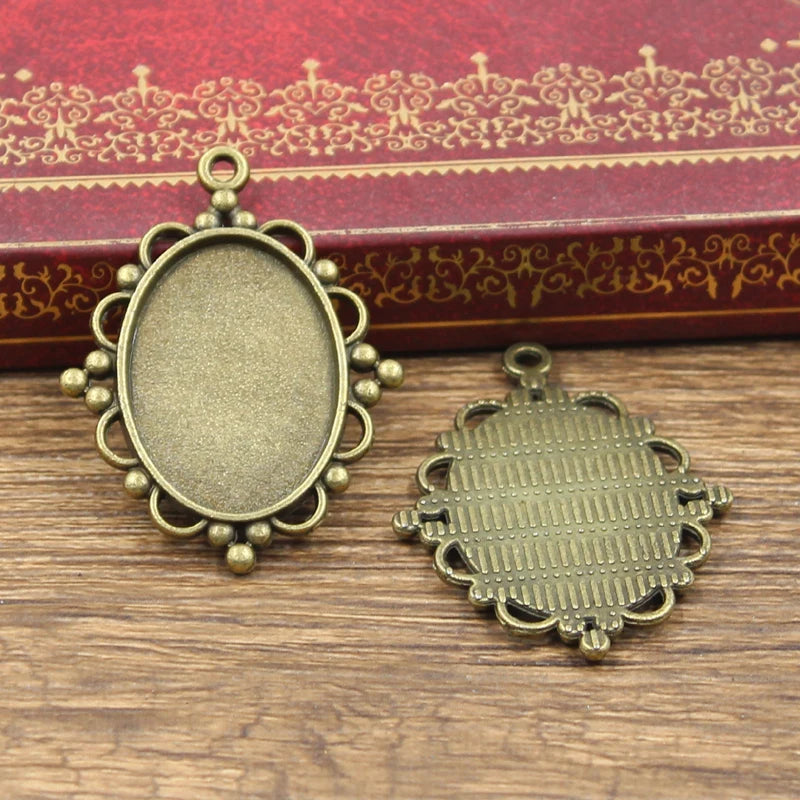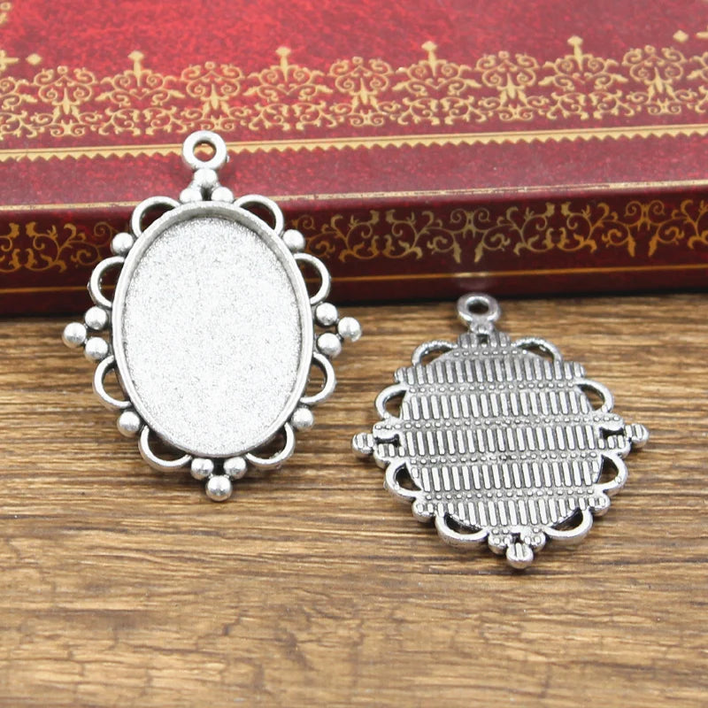 5pcs Fit 25x18mm Oval Glass Cabochon Base Setting Hot Antique Bronze Silver Color Color Pendant Tray For Jewelry DIY Making