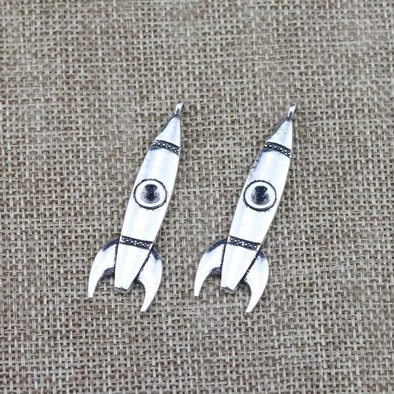 6 Pieces 15*50mm Antique Silver Color Rocket Charms Pendant Keychain For DIY Jewelry Making