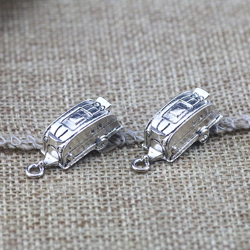 6 Pieces 27.2x10mm Antique Silver Color Car Charms Minibus Keychain for DIY Jewelry Making
