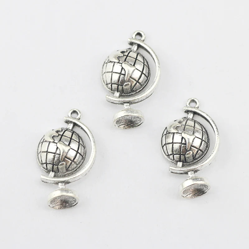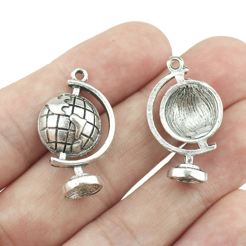 6 Pieces 28x17mm Antique Silver Plated Maps Tellurio Charms