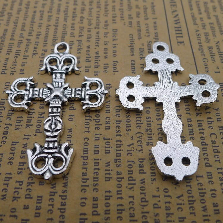 6 Pieces 30*45mm Antique Silver Color Mixed Alloy Charms Cross Wicca Bracelet For DIY Jewelry Making