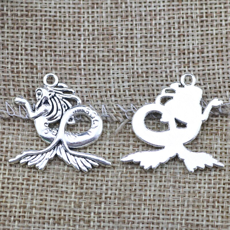 6 Pieces 30x29mm Antique Silver Color Mermaid Charms Keychains Bracelet For DIY Jewelry Making