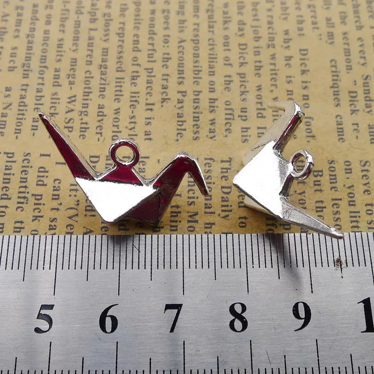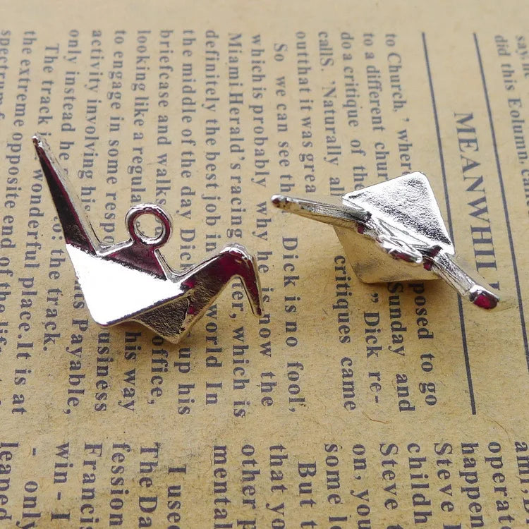6Pcs 16*28mm Zinc Alloy Lucky Paper Crane Charms Peace Symbol Necklace Keychain Pendant Accessory Charms For Jewelry Making Gift
