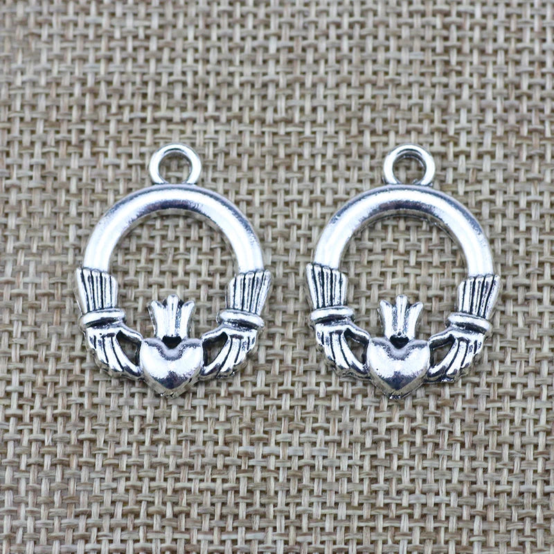 6Pieces 22*29mm Mixed Alloy Antique Silver Color Heart Hands Charms Keychain Pendant Accessory For DIY Jewelry Making