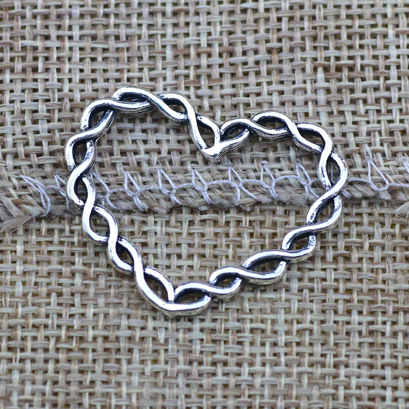 8 Pieces 32x26mm Antique Silver Color Heart Charms Hollow Necklace for DIY Jewelry Making