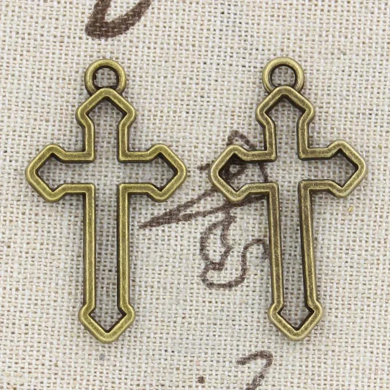 10pcs Charms Hollow Cross 38x22mm Antique Bronze Silver Color Plated Pendants Making DIY Handmade Tibetan Finding Jewelry