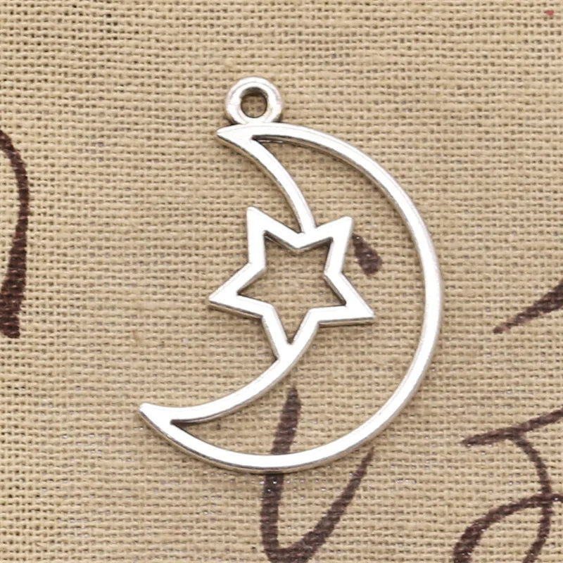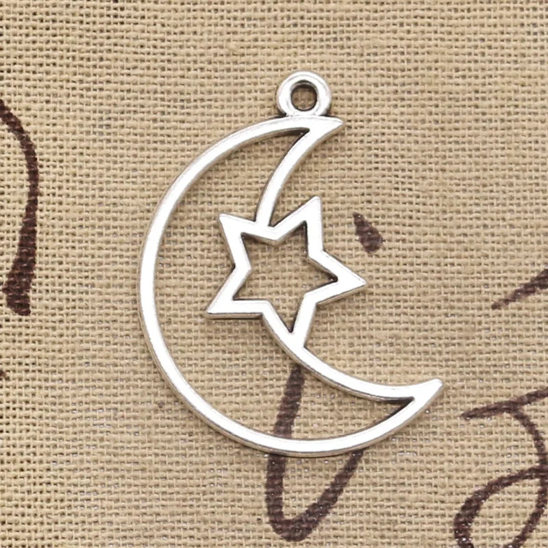 10pcs Charms Hollow Moon Star 36x25mm Antique Silver Color Pendants Making DIY Handmade Tibetan Finding Jewelry