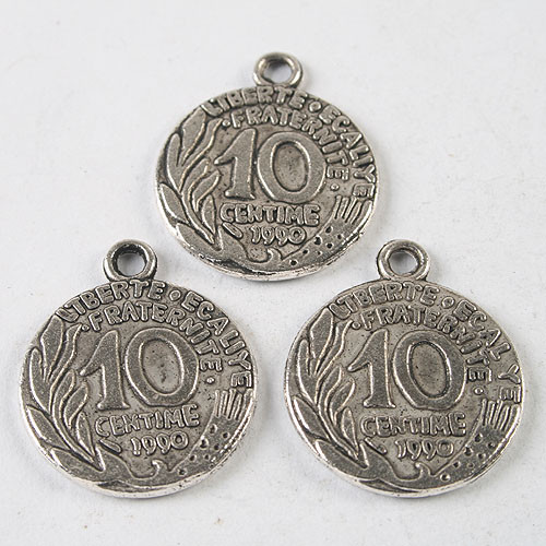 description:8pcs dark silver tone 10 centime Currency charm h3633