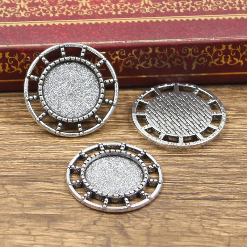 10pcs Fit 14mm Round Glass Cabochon Base Setting Hot Antique Bronze Silver Color Color Pendant Tray For Jewelry DIY Making