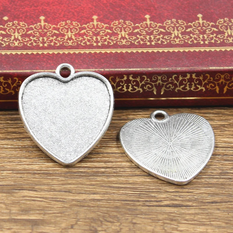 8pcs Fit 20mm Heart Simple Glass Cabochon Base Setting Hot Antique Bronze Silver Color Color Pendant Tray For Jewelry DIY Making
