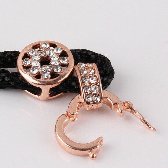 Black Color Necklace Cord Flower Rhinestones Bail Link Clasp 1pc CL19