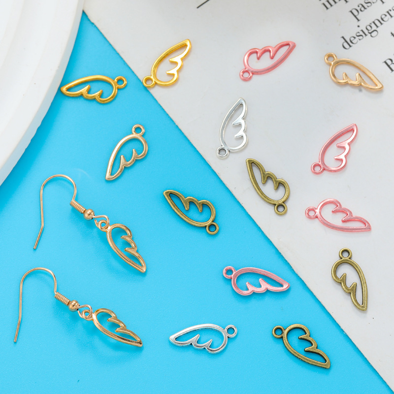 100pc 17 * 7mm alloy accessory with hollowed out wings and wing pendant D453