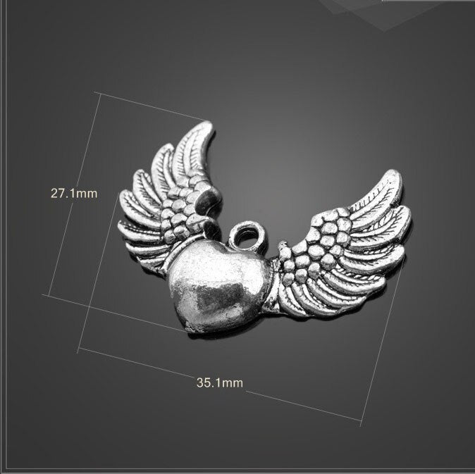 Factory price 3 PCS/Lot 35.1mm*27.1mm suspension metal Antique Silver Plated Wing Heart Charm For Jewelry Making
