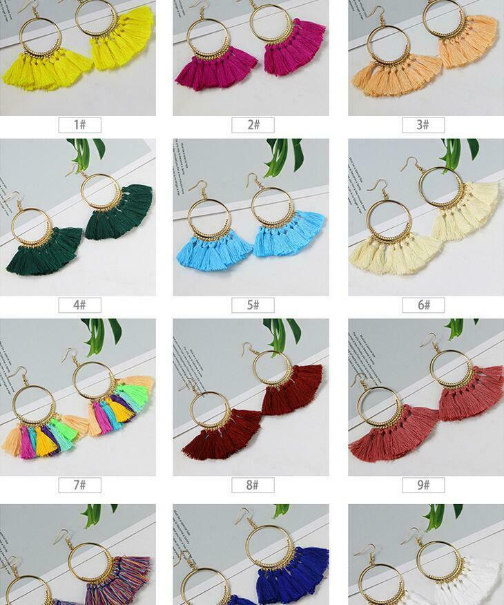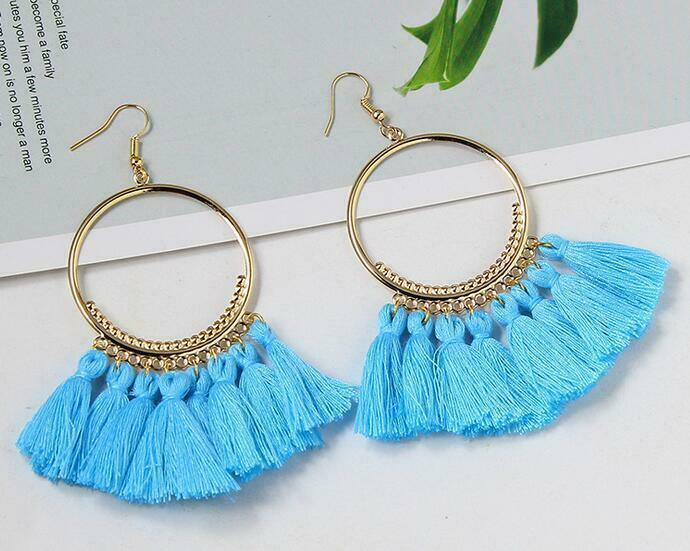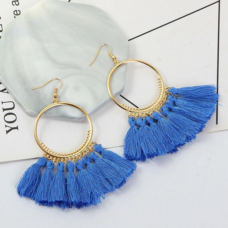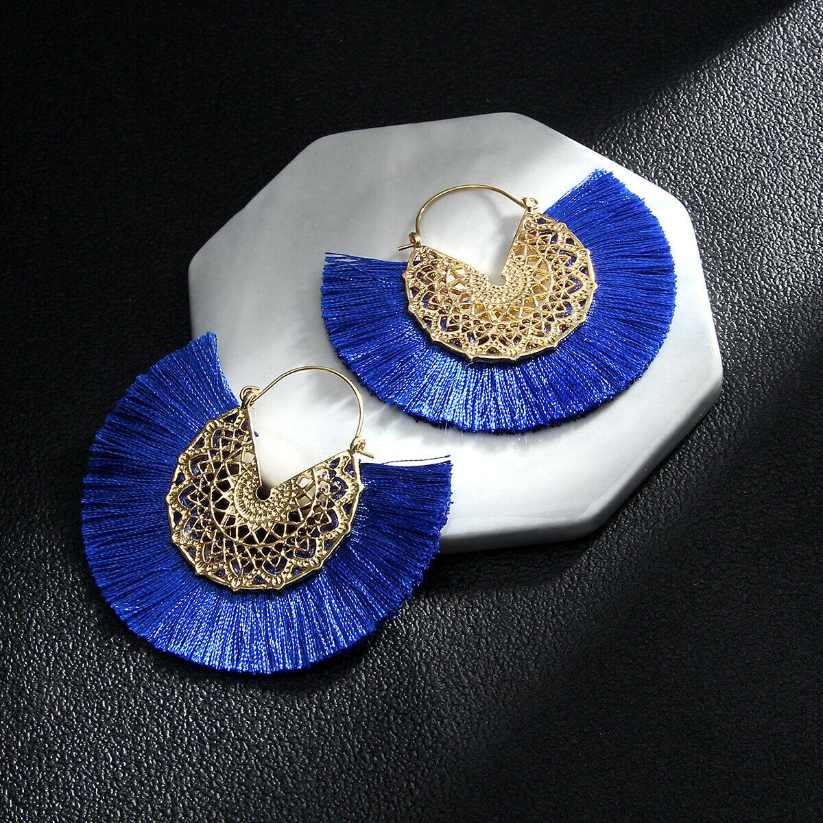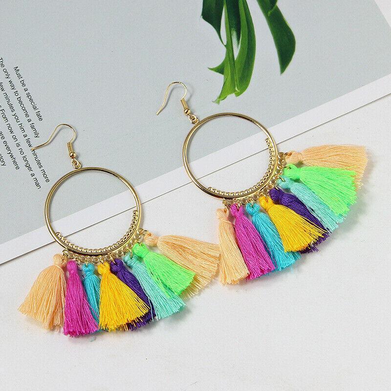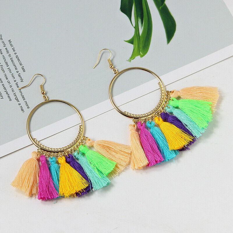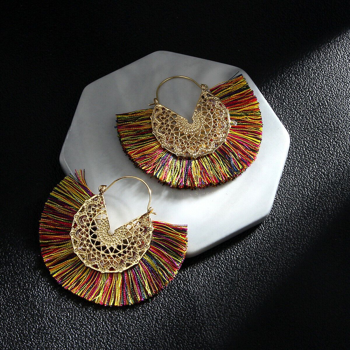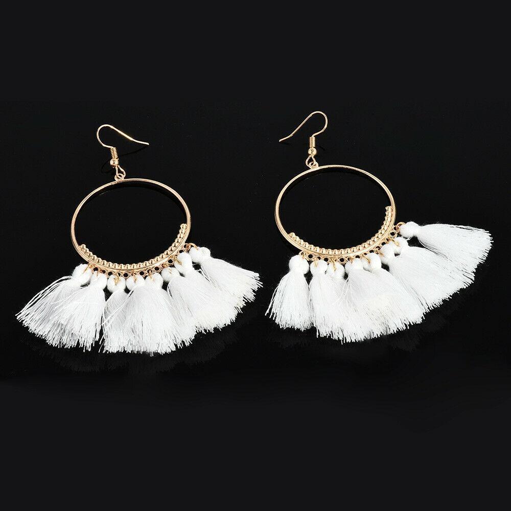 Fashion Bohemian Earrings Hook Tassel Fringe Boho Dangle Earrings Jewelry 1 Pair