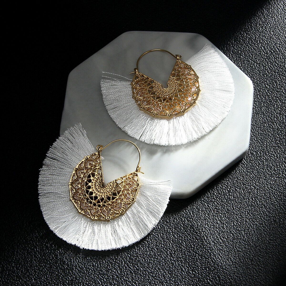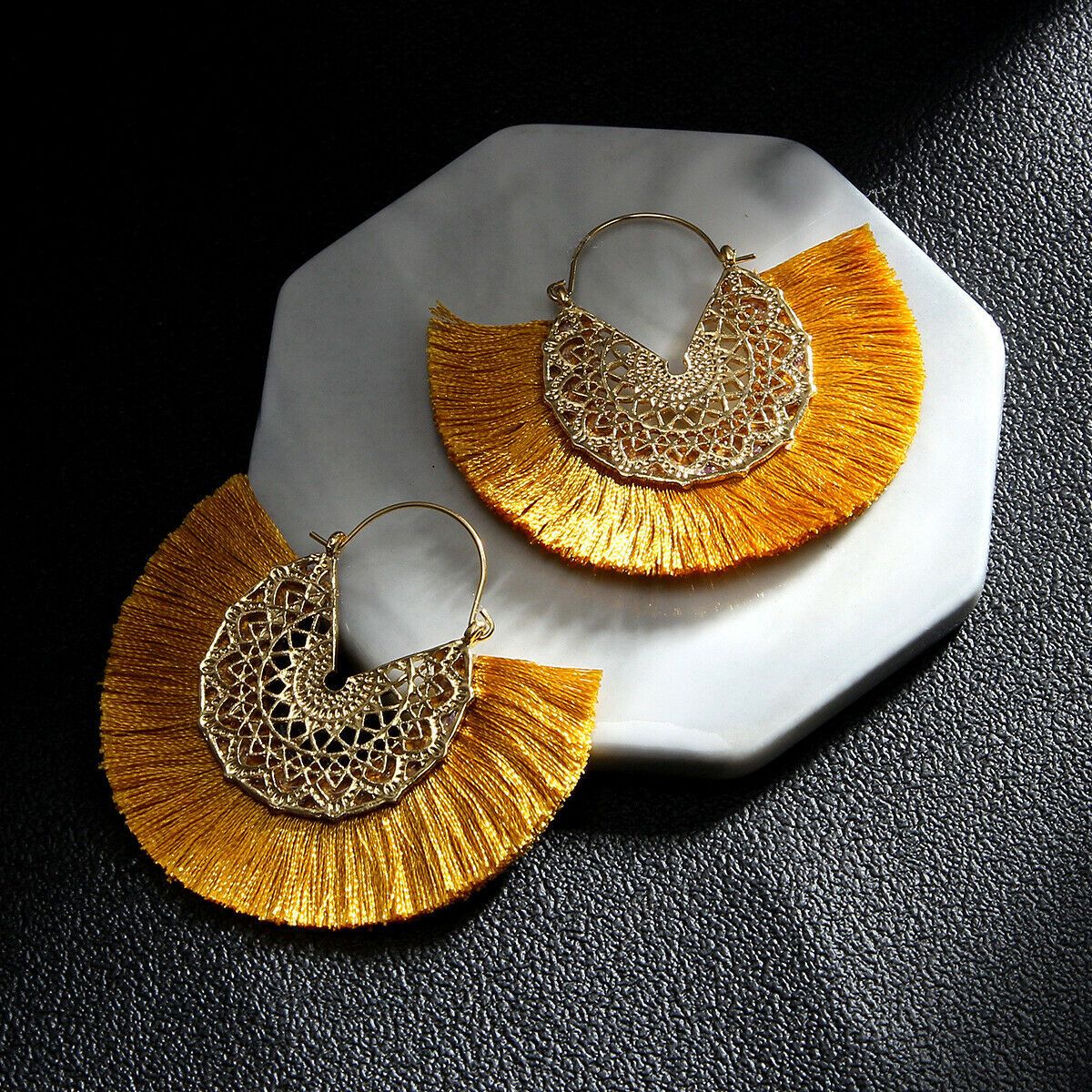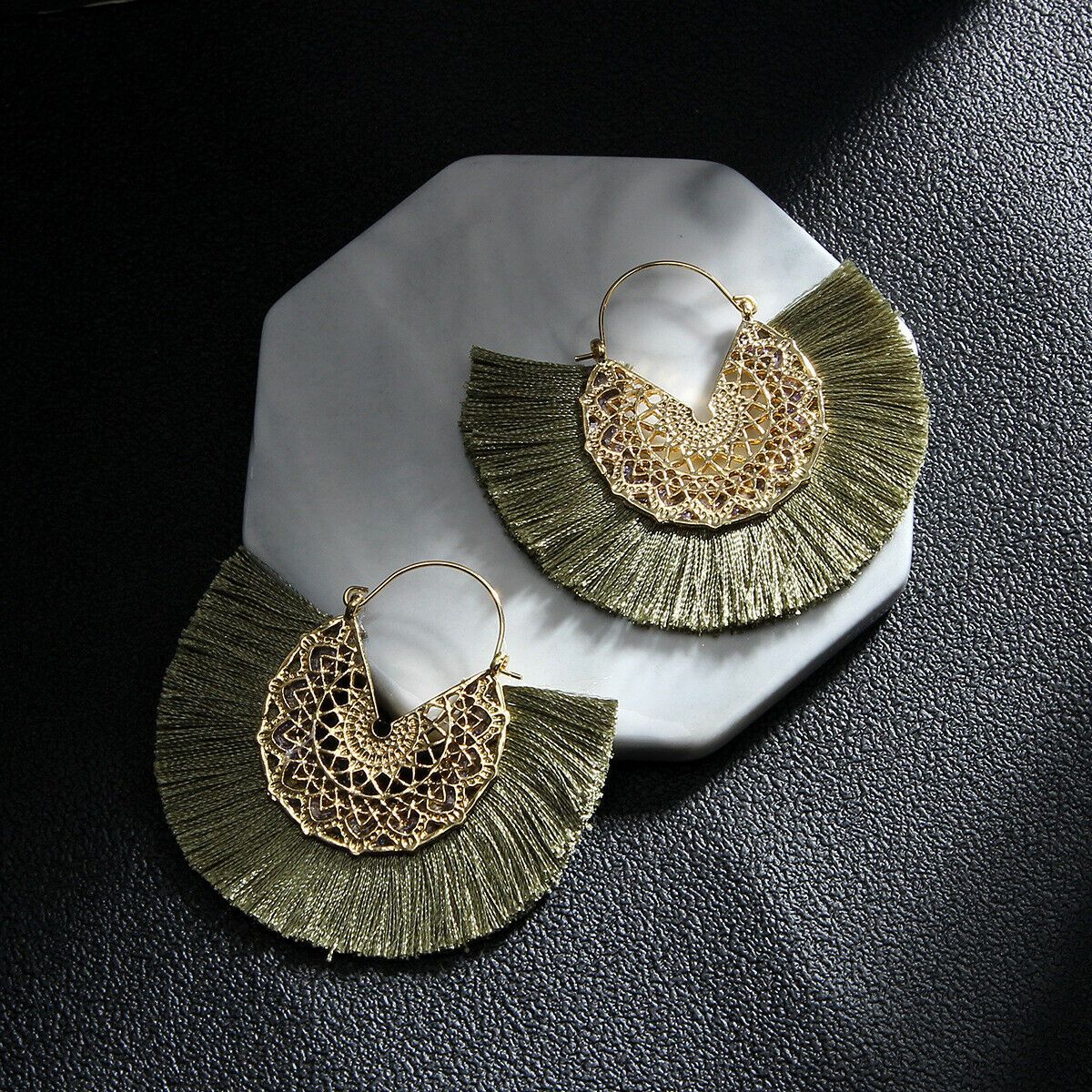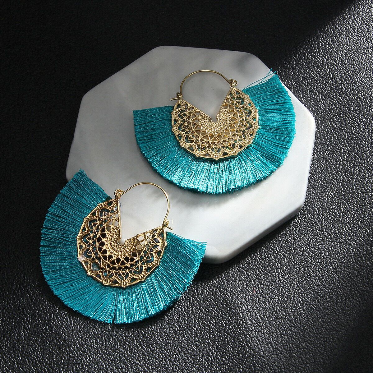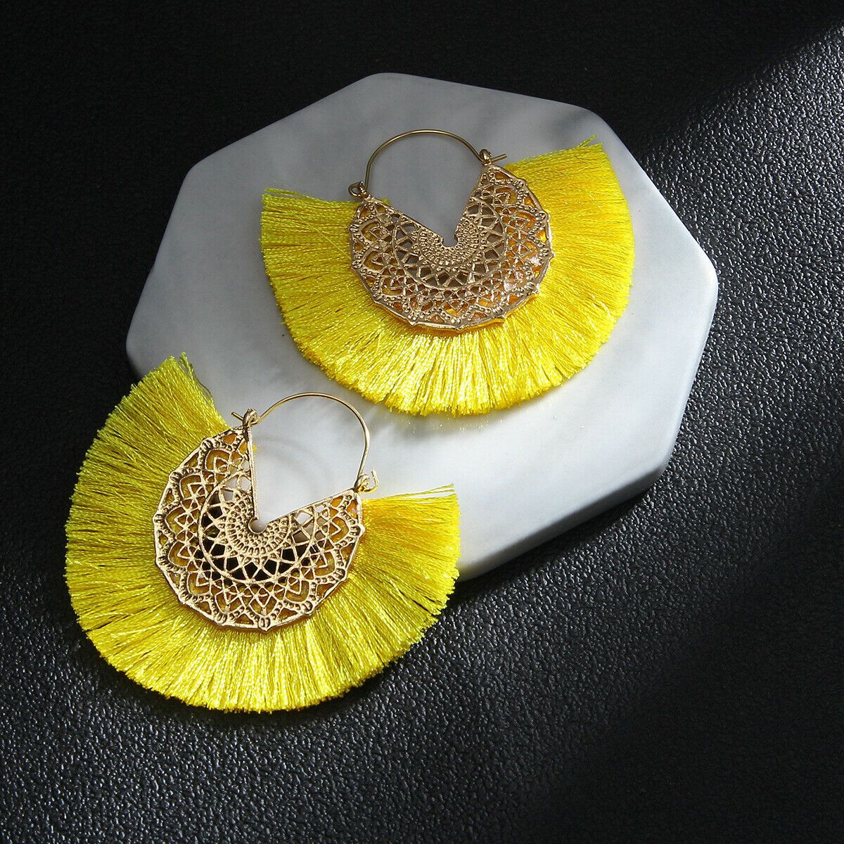 Fashion Bohemian Earrings Hook Tassel Fringe Boho Dangle Earrings Jewelry 1 Pair