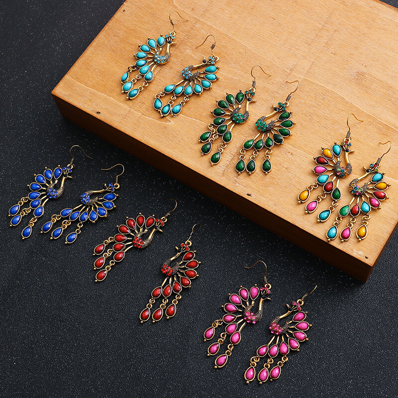 Fashion Jewelry Hook Earring The peacock Sapphire Earring Big Retro Earring