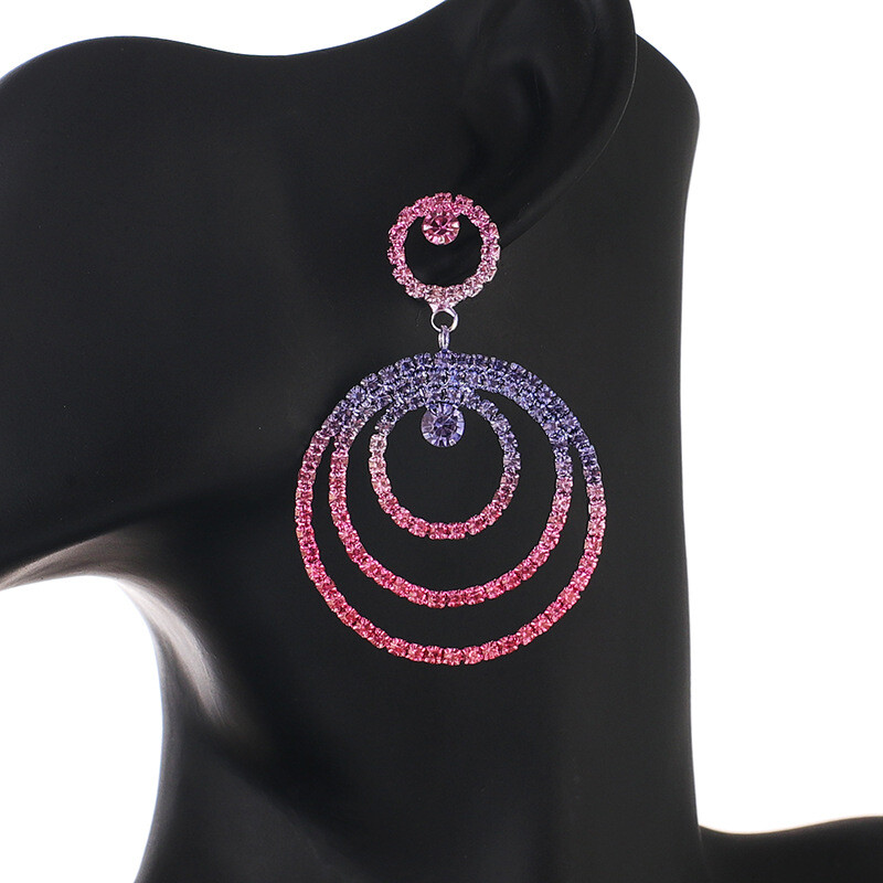 Fashion Jewelry Stud Earring gradient Color Diamond Round circle Earring