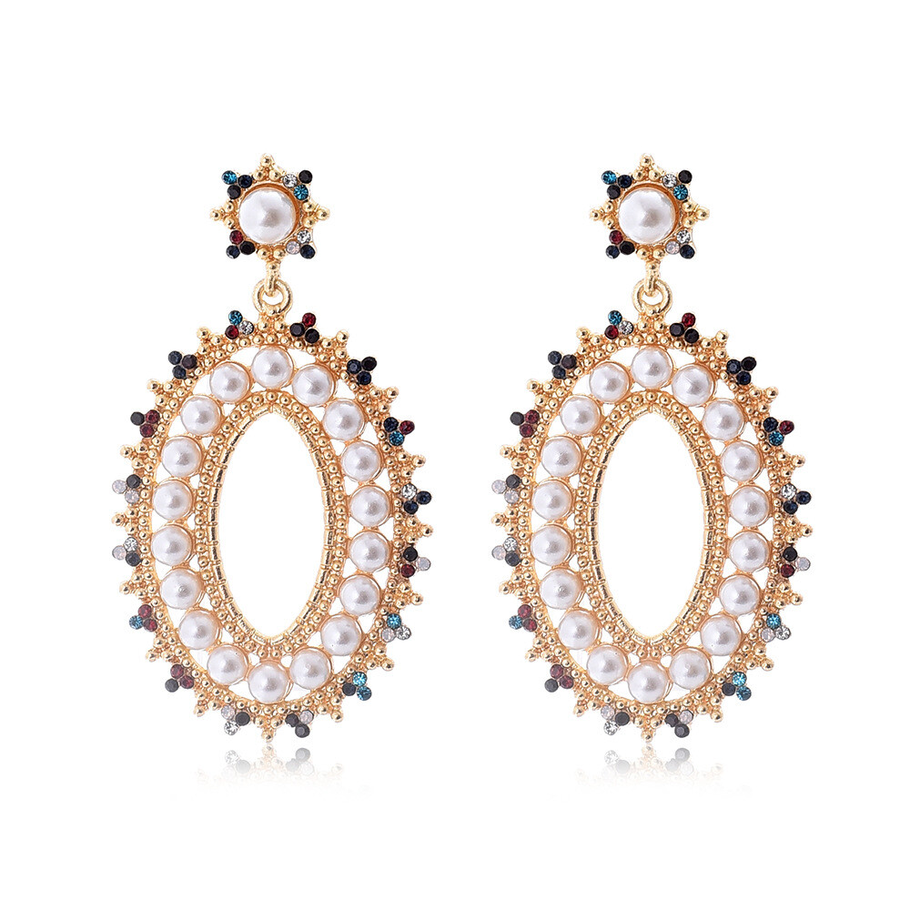 Fashion Jewelry Stud Earring oval Pearl Gold Diamond Earring