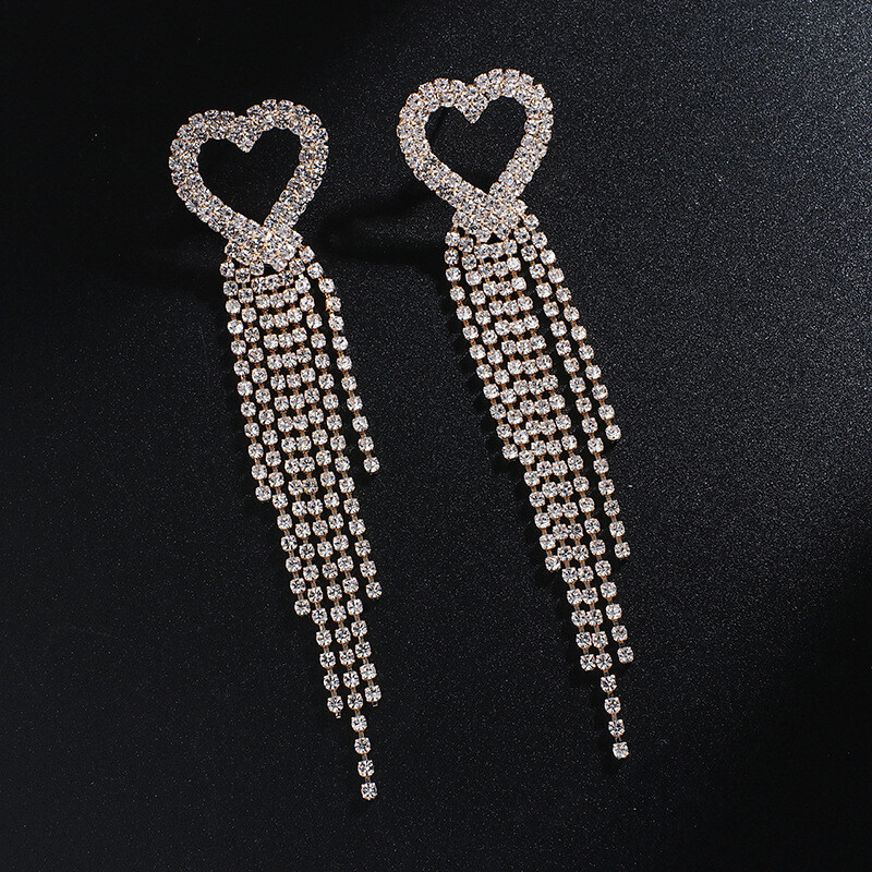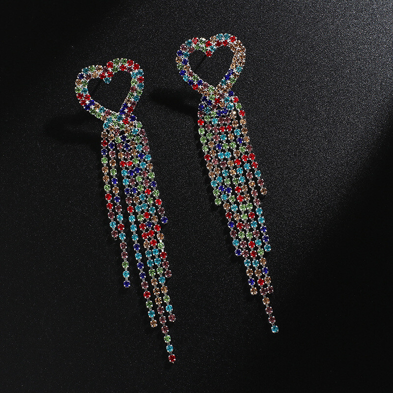 Fashion Jewelry Stud Earring Rainbow Color Diamond Heart tassel Long Earring