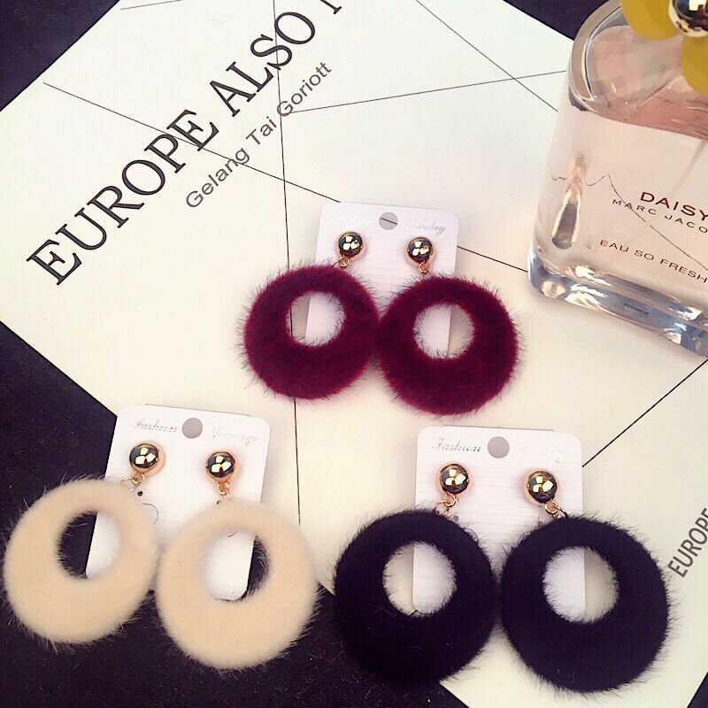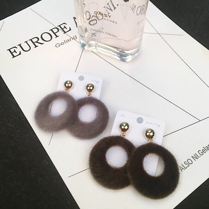 Fashion Jewelry Stud Earring Soft fuzzy Round Earring Lovely Fur Earring