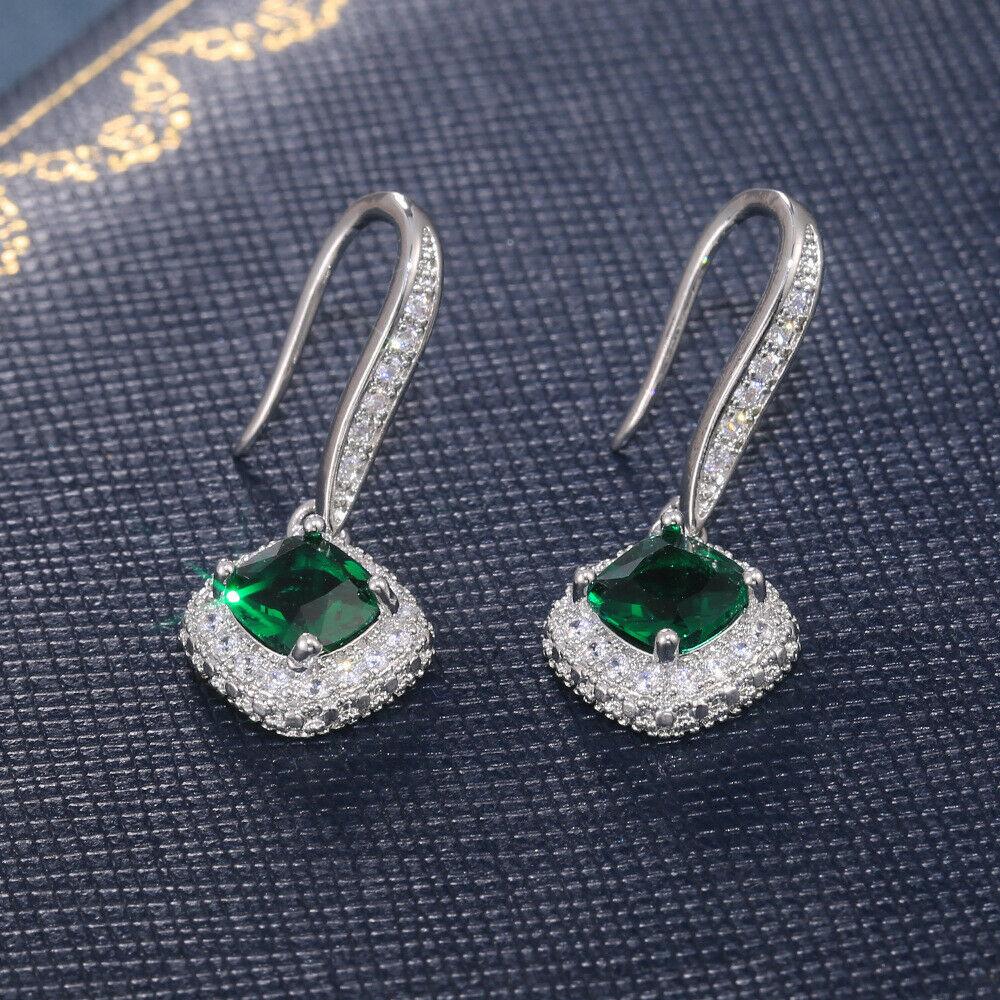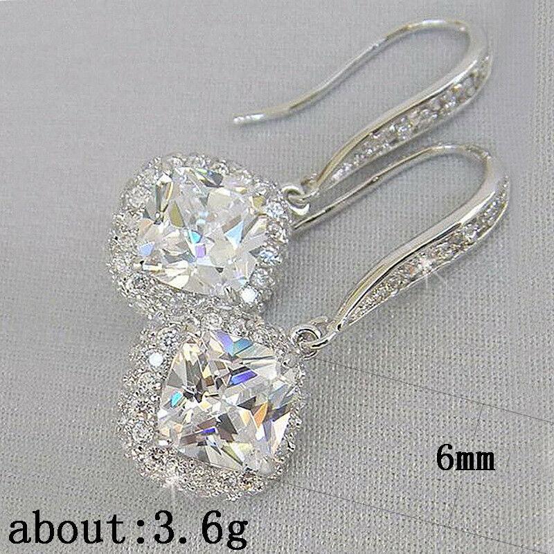 Fashion Square Crystal Drop Earrings Hook Rhinestones 925silver Plated x1 E511