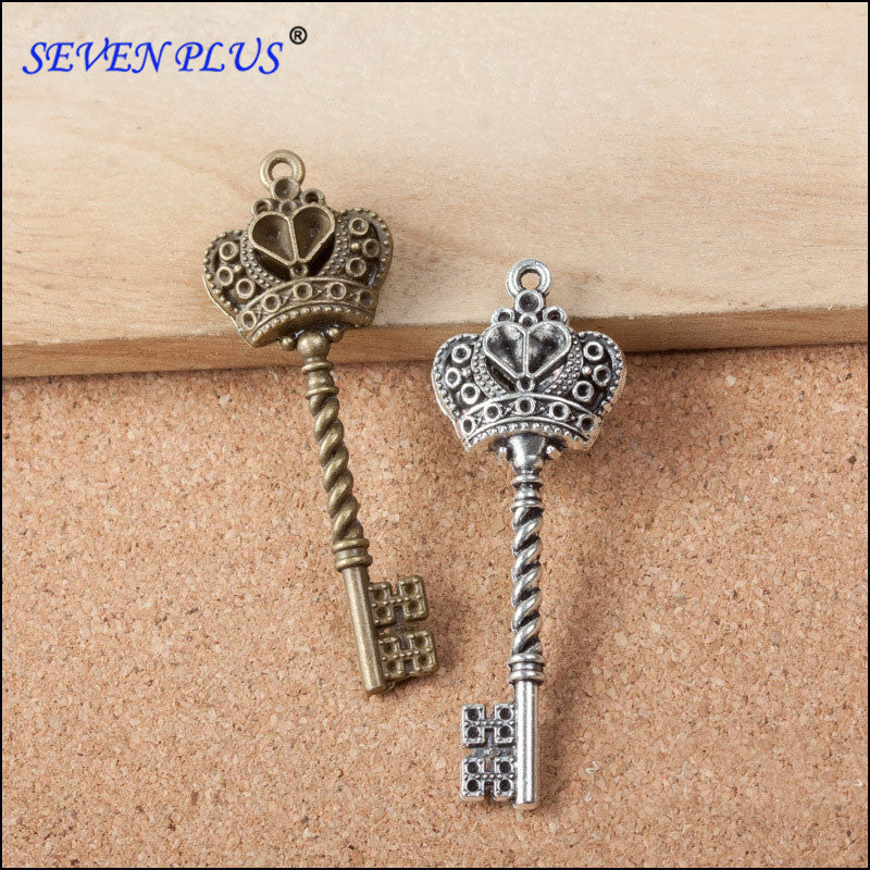 Good Quality 10 Pieces/Lot 61mm*21mm Diy Jewelry Making Crown Key Necklace Pendants