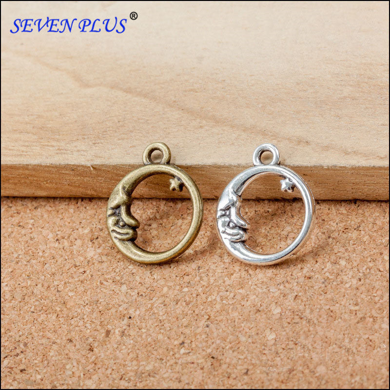 Good Quality 50 Pieces/Lot 20mm*16mm Diy Jewelry Making Round Moon And Stars Charms Pendants