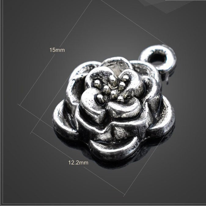 10 PCS/Lot 12.2mm*15mm antique silver plated small metal diy handmade beautiful flowers charms ef4534
