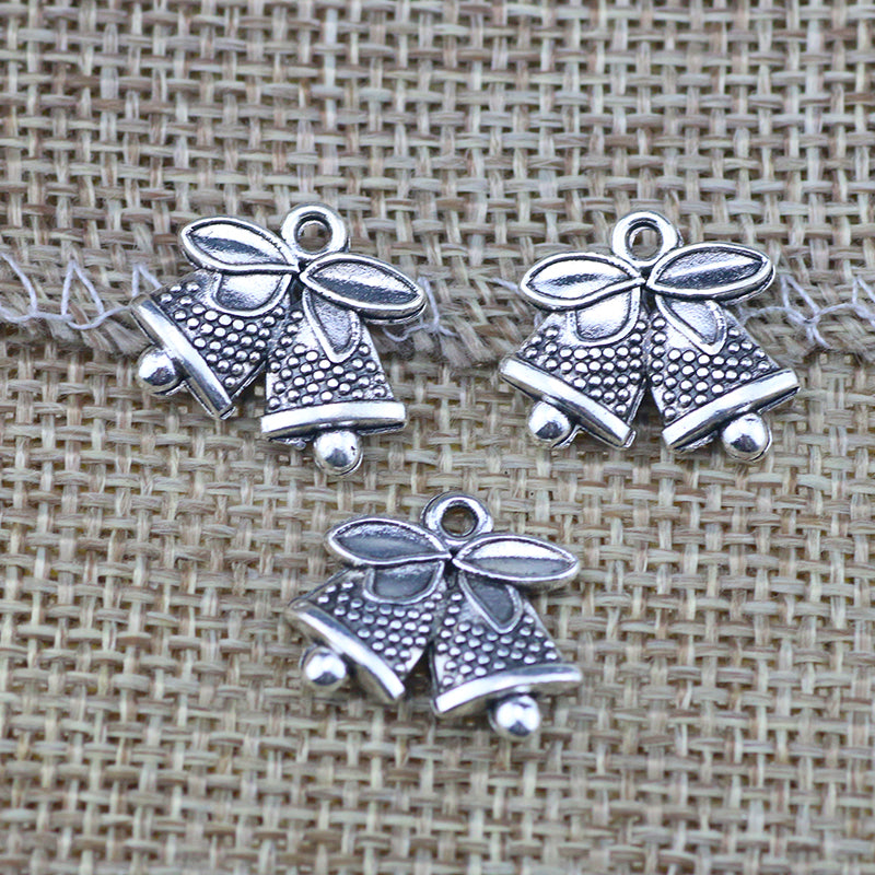 High quality 10 PCS/Lot 16.3mm*13.7mm antique silver plated small metal diy handmade little Christmas bell charms