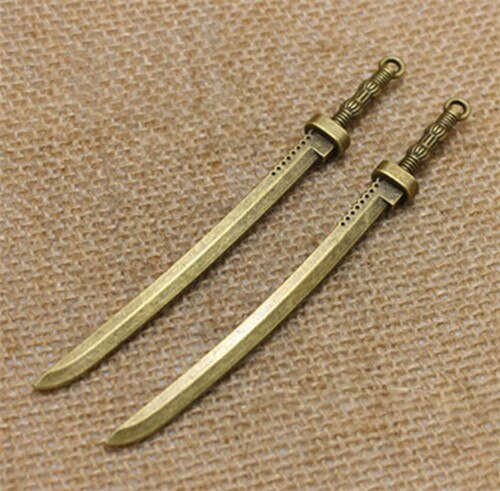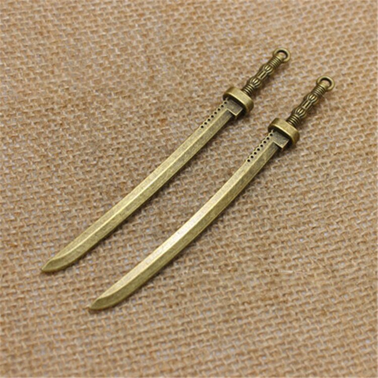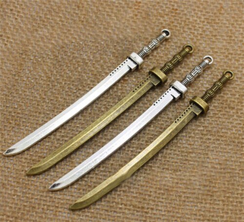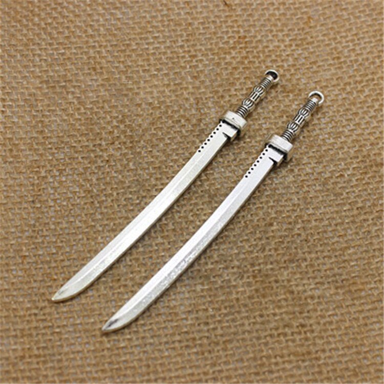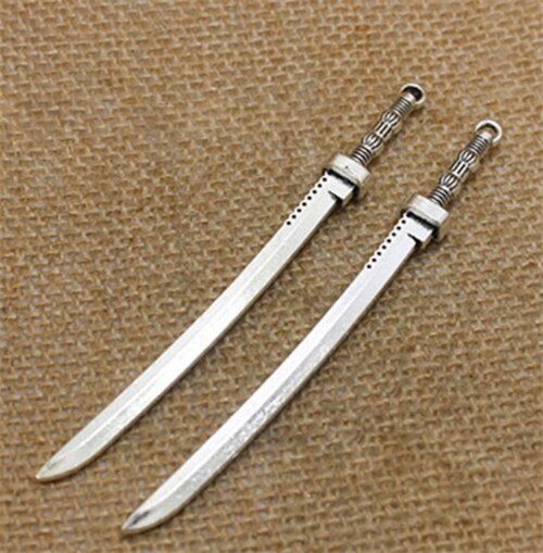 High Quality 10 Pieces/Lot 107mm*10mm Antique Silver plated Antique Bronze Alloy Sword Charms