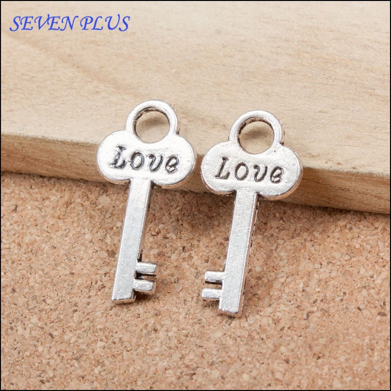 High Quality 10 Pieces/Lot 13mm*26mm Antique Silver Plated Love Keys Charms For Jewelry Handmade Making
