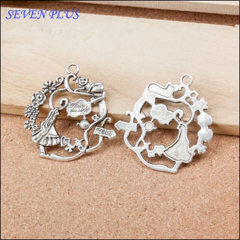 High Quality 10 Pieces/Lot 41mm*41mm Antique Silver Plated Alice In Wonderland Charms